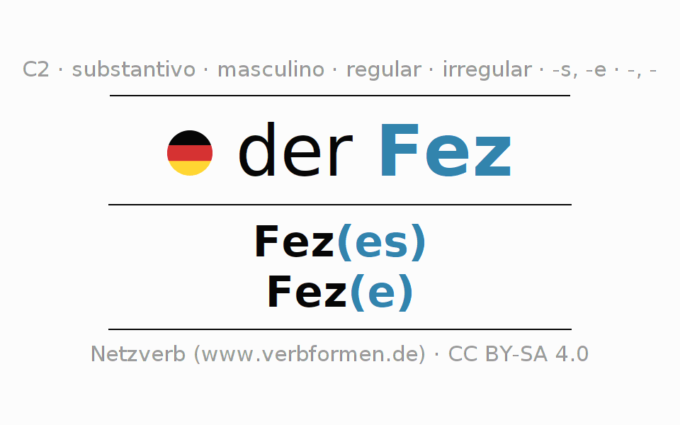 - Singular: der Fez, des Fez(es), dem Fez(e), den Fez