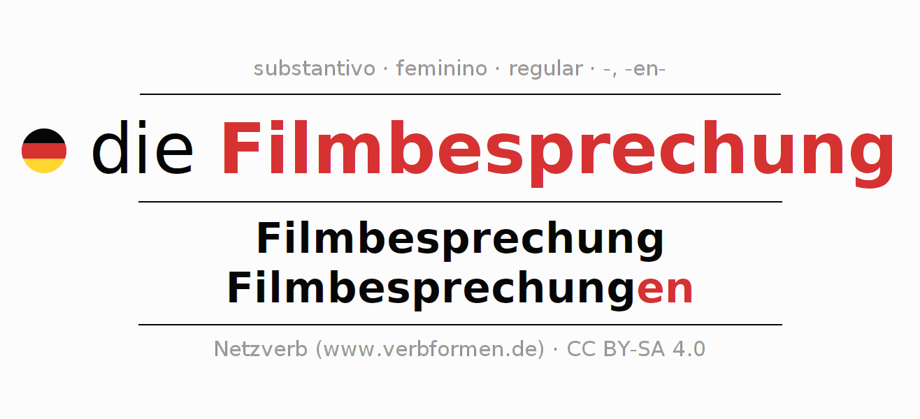 - Singular: die Filmbesprechung, der Filmbesprechung, der Filmbesprechung, die Filmbesprechung