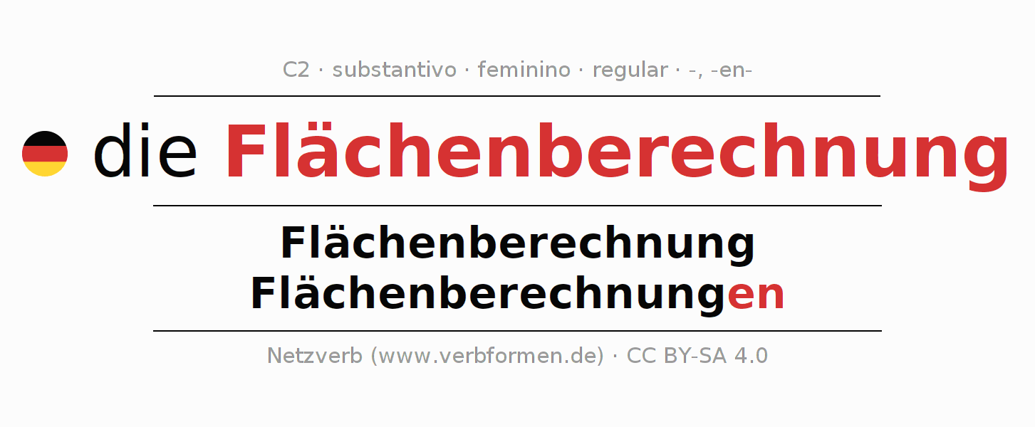 - Singular: die Flächenberechnung, der Flächenberechnung, der Flächenberechnung, die Flächenberechnung