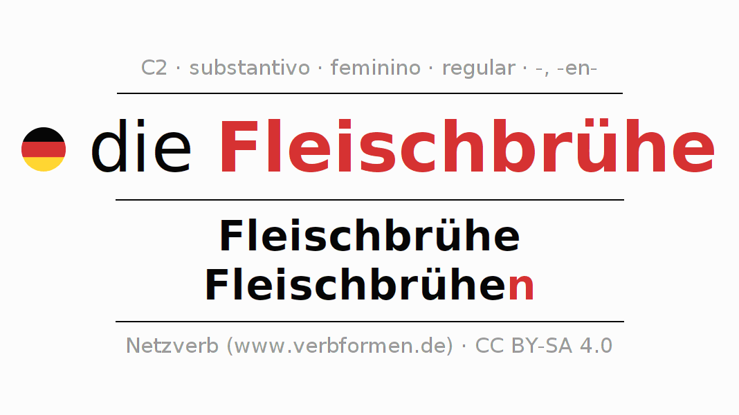 - Singular: die Fleischbrühe, der Fleischbrühe, der Fleischbrühe, die Fleischbrühe