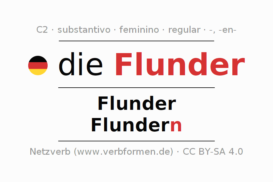 - Singular: die Flunder, der Flunder, der Flunder, die Flunder
