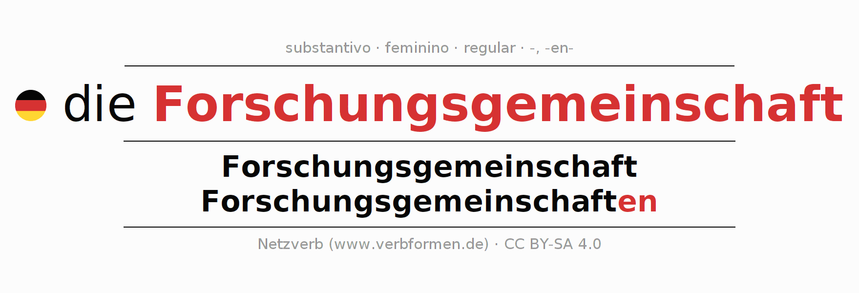 - Singular: die Forschungsgemeinschaft, der Forschungsgemeinschaft, der Forschungsgemeinschaft, die Forschungsgemeinschaft
