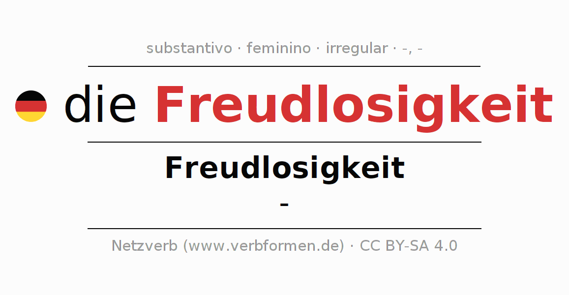 A declinação do substantivo Freudlosigkeit (falta de alegria, tristeza) está no genitivo singular Freudlosigkeit e no nominativo plural - . O substantivo Freudlosigkeit é declinado com as terminações -/-. Não há formas no plural. O gênero gramatical de Freudlosigkeit é feminino e o artigo definido é "die". Não se pode somente declinar o substantivo Freudlosigkeit mas sim todos os substantivos em alemão. Comentários ☆