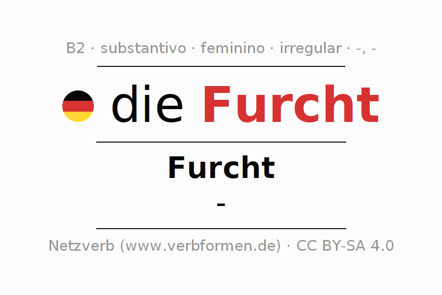 Declinação de Furcht é apresentada em uma tabela com todas as formas no singular e no plural (plural) e em todos os quatro casos: nominativo (1º caso), genitivo (2º caso), dativo (3º caso) e acusativo (4º caso) . Especialmente para os alunos de alemão, a correta declinação da palavra Furcht é fundamental.