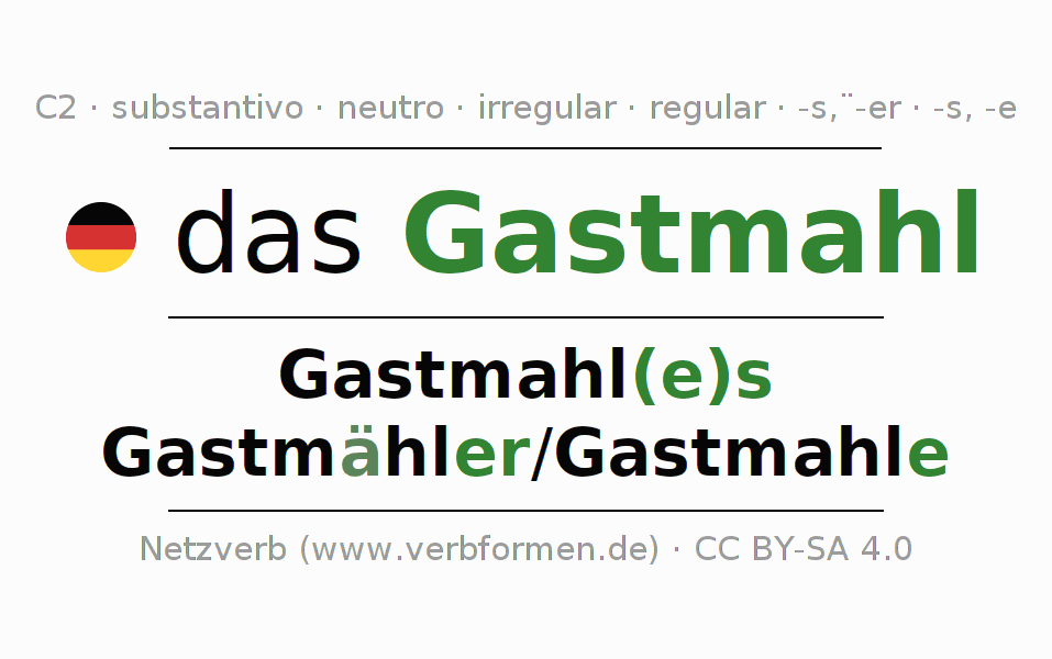 | Nom. | das Gastmahl | die Gastmähler/Gastmahle |