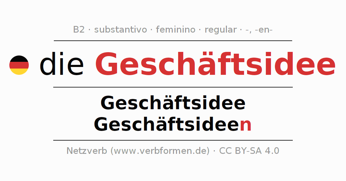 - Singular: die Geschäftsidee, der Geschäftsidee, der Geschäftsidee, die Geschäftsidee