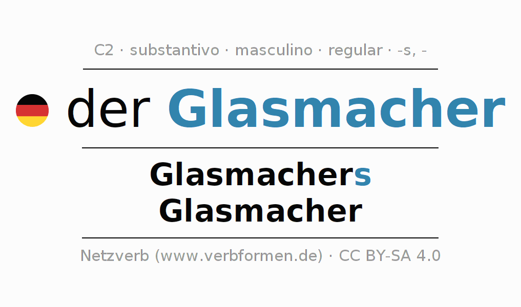 - Singular: der Glasmacher, des Glasmachers, dem Glasmacher, den Glasmacher