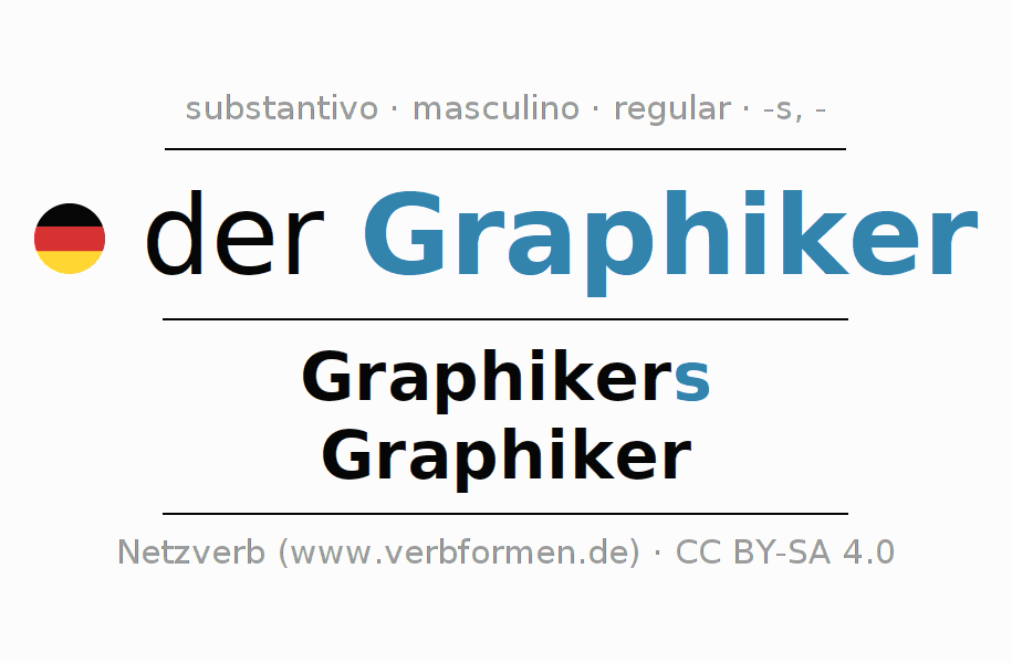 Declinação de Graphiker é apresentada em uma tabela com todas as formas no singular e no plural (plural) e em todos os quatro casos: nominativo (1º caso), genitivo (2º caso), dativo (3º caso) e acusativo (4º caso) . Especialmente para os alunos de alemão, a correta declinação da palavra Graphiker é fundamental.