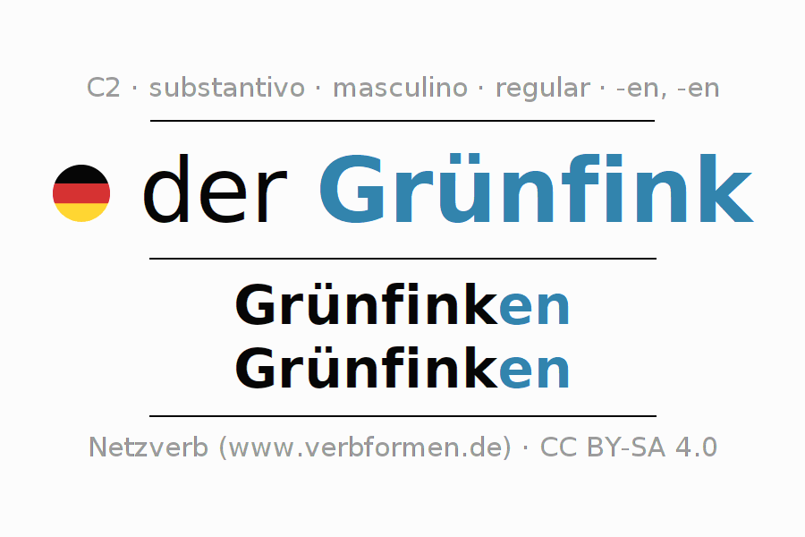 - Singular: der Grünfink, des Grünfinken, dem Grünfinken, den Grünfinken