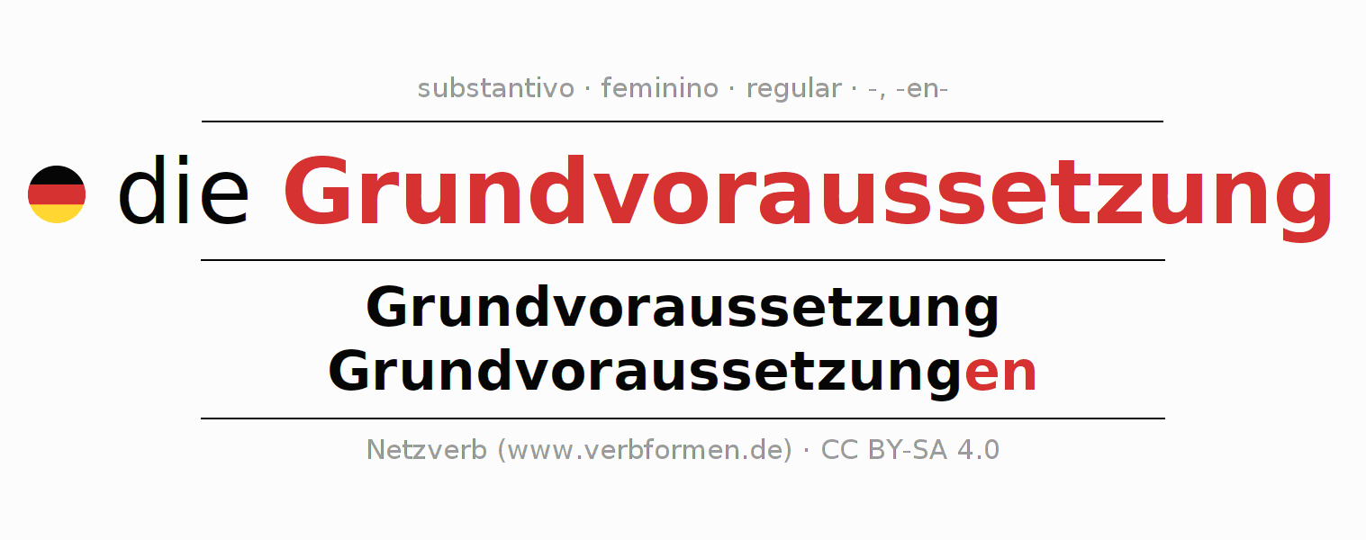 - Singular: die Grundvoraussetzung, der Grundvoraussetzung, der Grundvoraussetzung, die Grundvoraussetzung