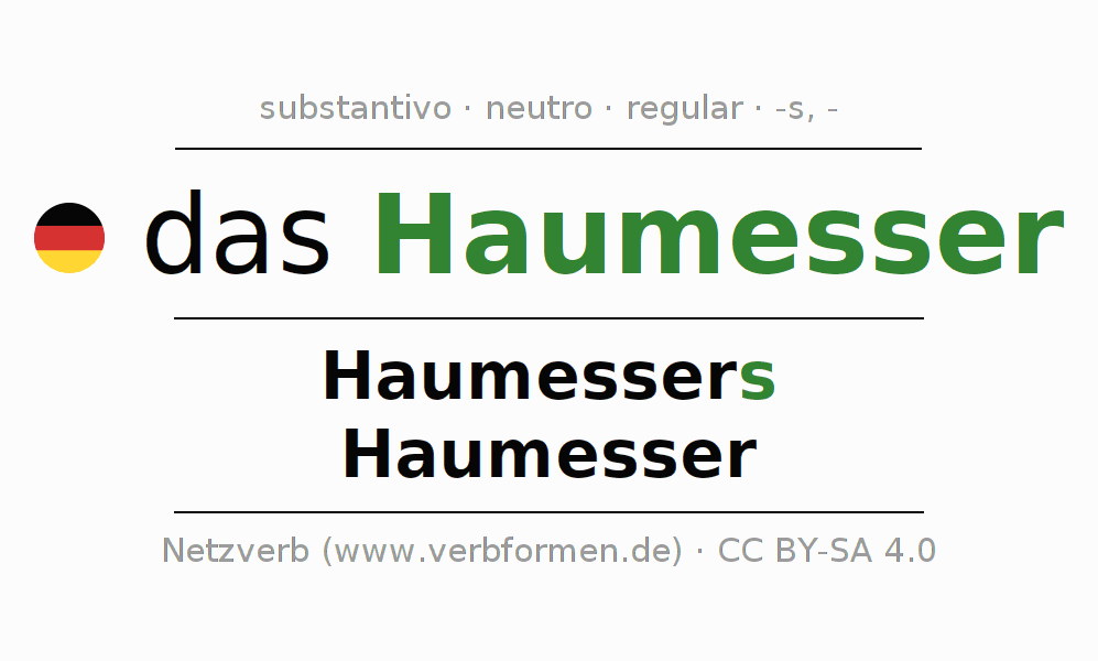 - Singular: das Haumesser, des Haumessers, dem Haumesser, das Haumesser