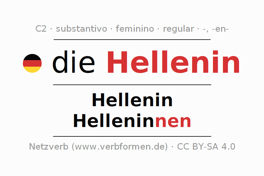 - Plural: die Helleninnen, der Helleninnen, den Helleninnen, die Helleninnen