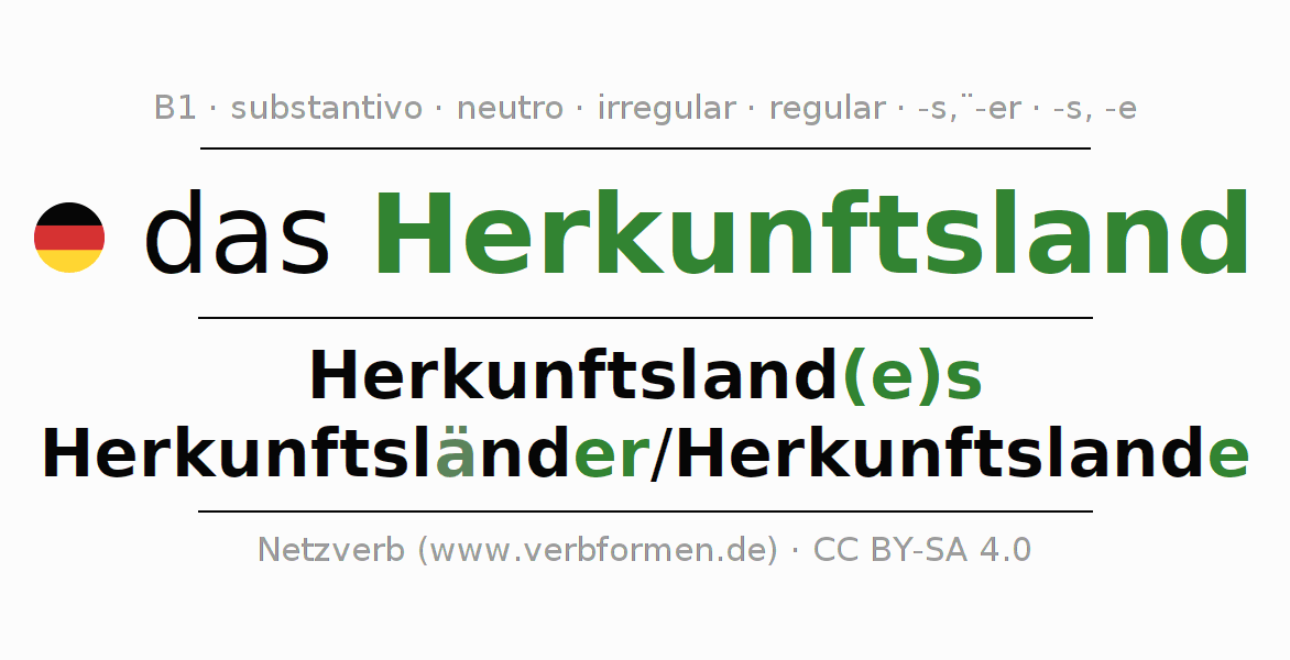 Resumo de todas as formas de declinação do substantivo Herkunftsland em todos os casos