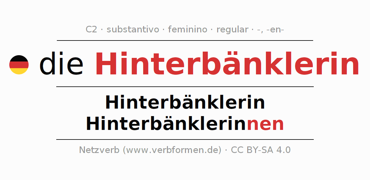 - Singular: die Hinterbänklerin, der Hinterbänklerin, der Hinterbänklerin, die Hinterbänklerin
