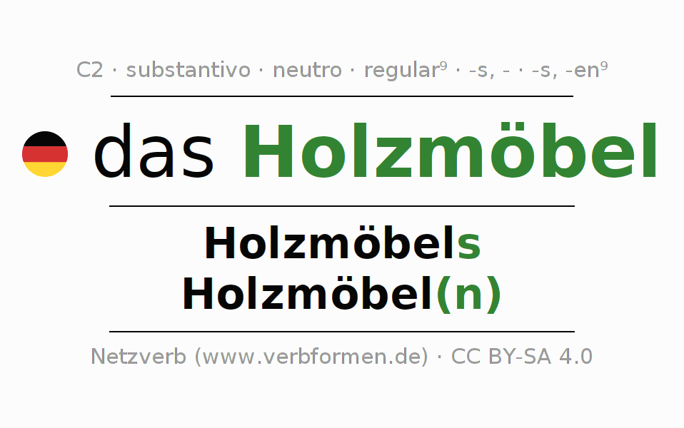 - Singular: das Holzmöbel, des Holzmöbels, dem Holzmöbel, das Holzmöbel