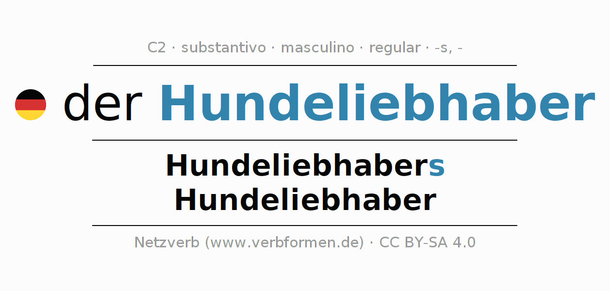 - Singular: der Hundeliebhaber, des Hundeliebhabers, dem Hundeliebhaber, den Hundeliebhaber