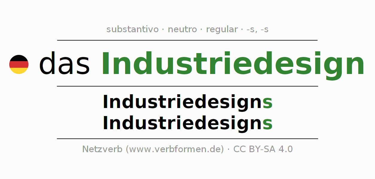 - Singular: das Industriedesign, des Industriedesigns, dem Industriedesign, das Industriedesign