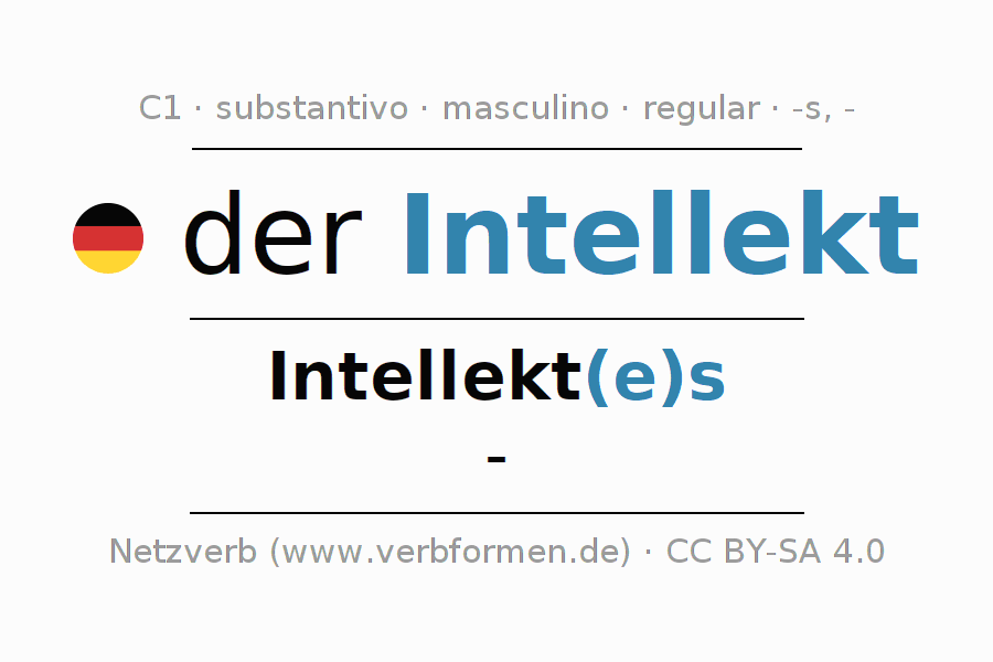 - Singular: der Intellekt, des Intellekt(e)s, dem Intellekt(e), den Intellekt