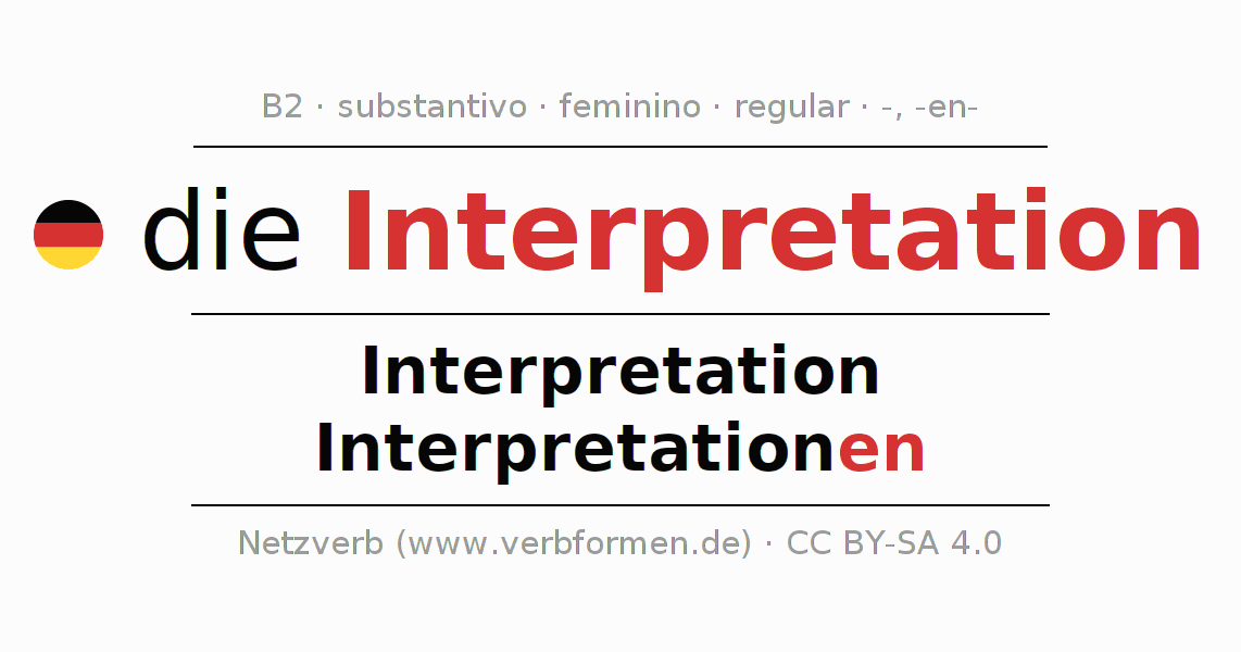 - Plural: die Interpretationen, der Interpretationen, den Interpretationen, die Interpretationen