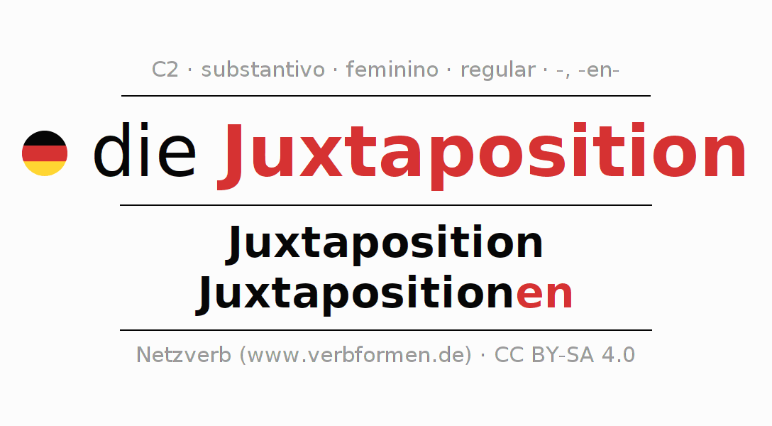 - Singular: die Juxtaposition, der Juxtaposition, der Juxtaposition, die Juxtaposition