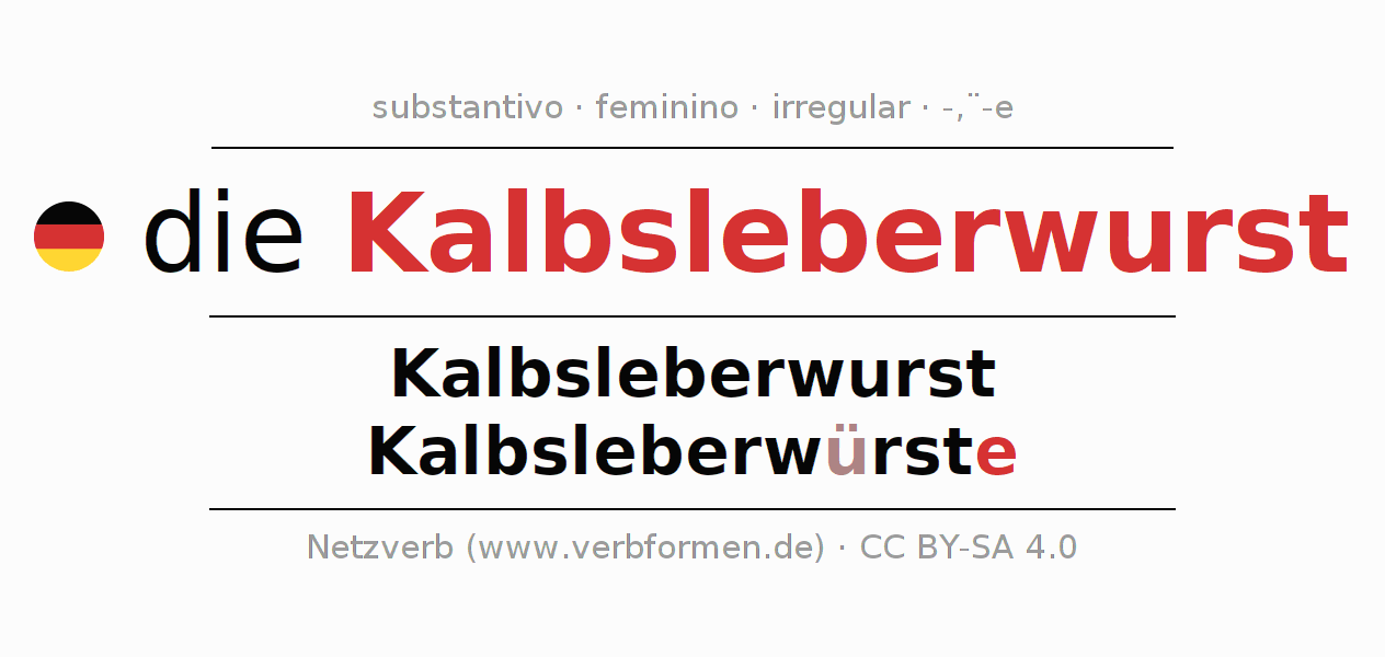 - Singular: die Kalbsleberwurst, der Kalbsleberwurst, der Kalbsleberwurst, die Kalbsleberwurst