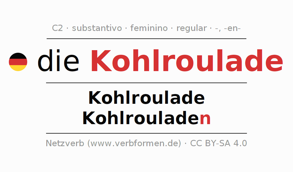 - Singular: die Kohlroulade, der Kohlroulade, der Kohlroulade, die Kohlroulade