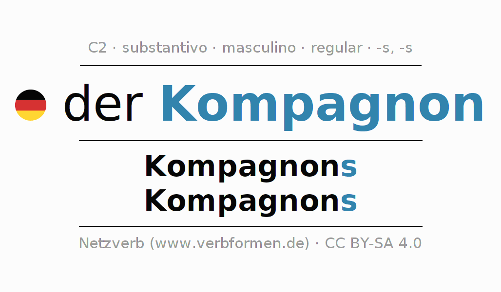 - Singular: der Kompagnon, des Kompagnons, dem Kompagnon, den Kompagnon