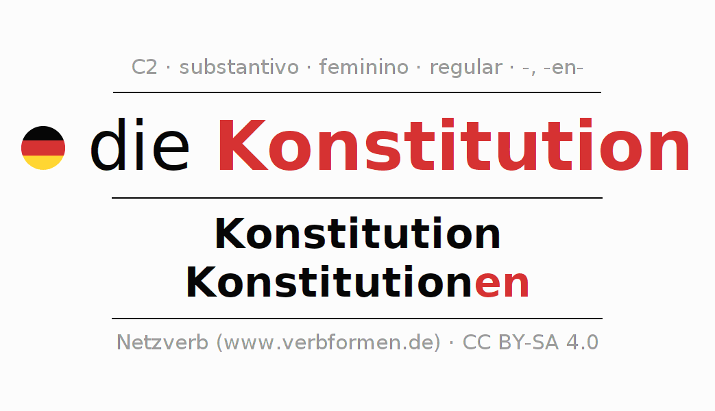 - Singular: die Konstitution, der Konstitution, der Konstitution, die Konstitution