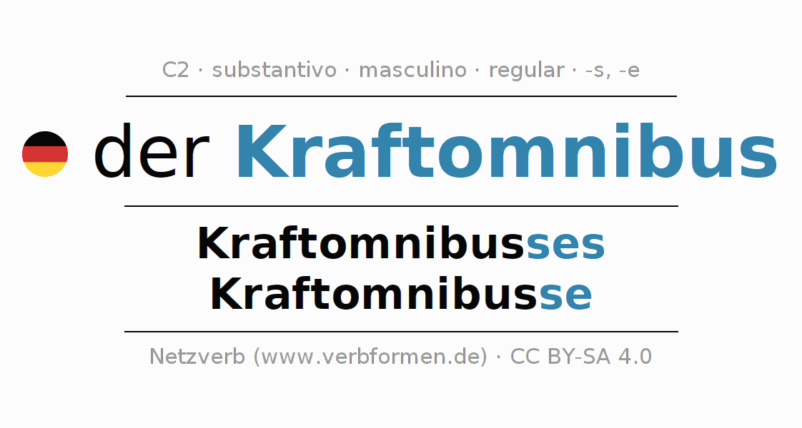 - Singular: der Kraftomnibus, des Kraftomnibusses, dem Kraftomnibus, den Kraftomnibus