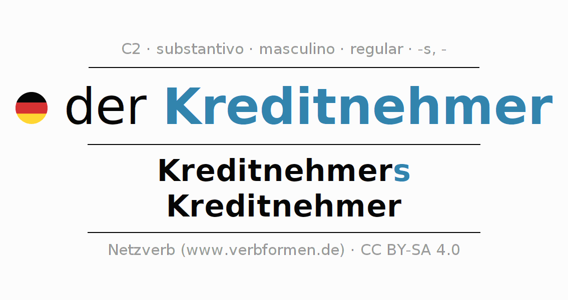 - Plural: die Kreditnehmer, der Kreditnehmer, den Kreditnehmern, die Kreditnehmer