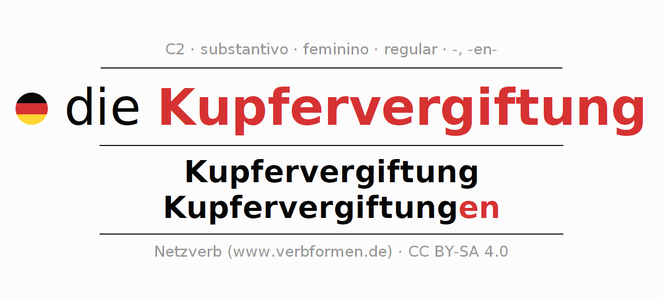 - Singular: die Kupfervergiftung, der Kupfervergiftung, der Kupfervergiftung, die Kupfervergiftung