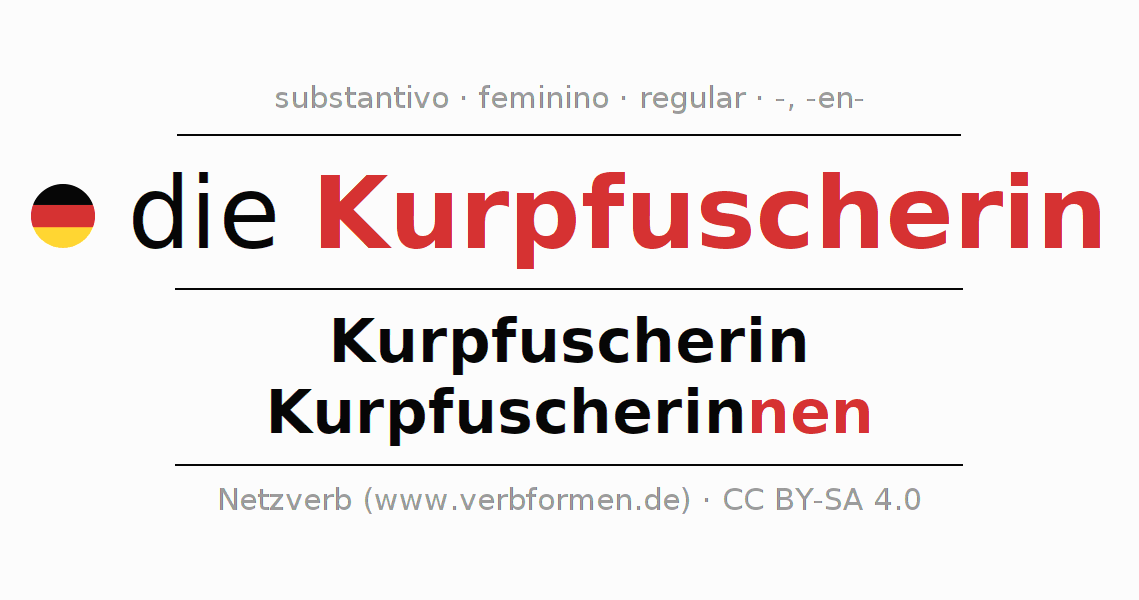 A declinação do substantivo Kurpfuscherin (curandeira, charlatã) está no genitivo singular Kurpfuscherin e no nominativo plural Kurpfuscherinnen . O substantivo fraco Kurpfuscherin é declinado com a terminação -/nen. O gênero gramatical de Kurpfuscherin é feminino e o artigo definido é "die". Não se pode somente declinar o substantivo Kurpfuscherin mas sim todos os substantivos em alemão. Comentários ☆
