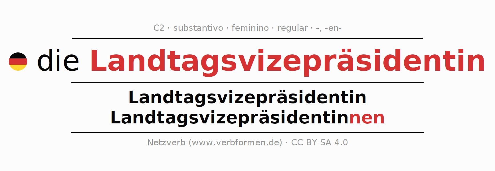 - Singular: die Landtagsvizepräsidentin, der Landtagsvizepräsidentin, der Landtagsvizepräsidentin, die Landtagsvizepräsidentin