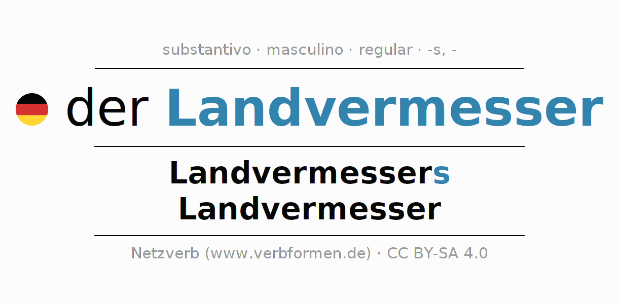 - Singular: der Landvermesser, des Landvermessers, dem Landvermesser, den Landvermesser