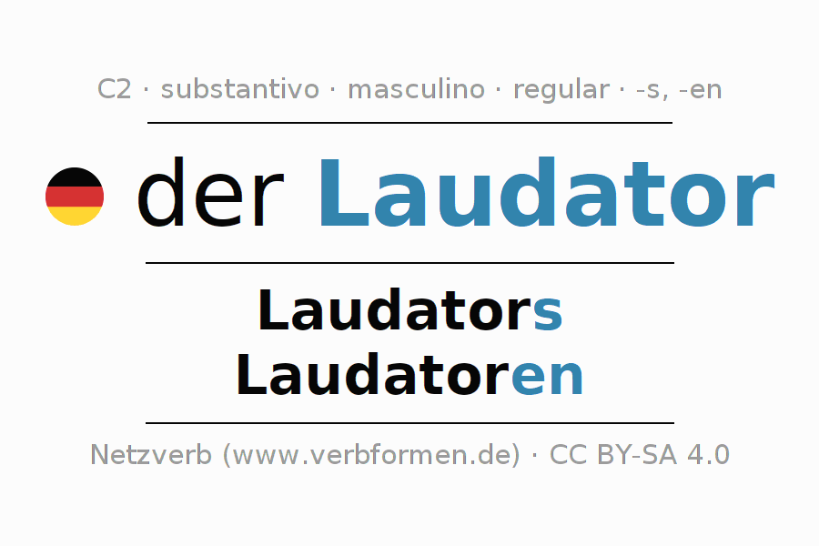 - Plural: die Laudatoren, der Laudatoren, den Laudatoren, die Laudatoren