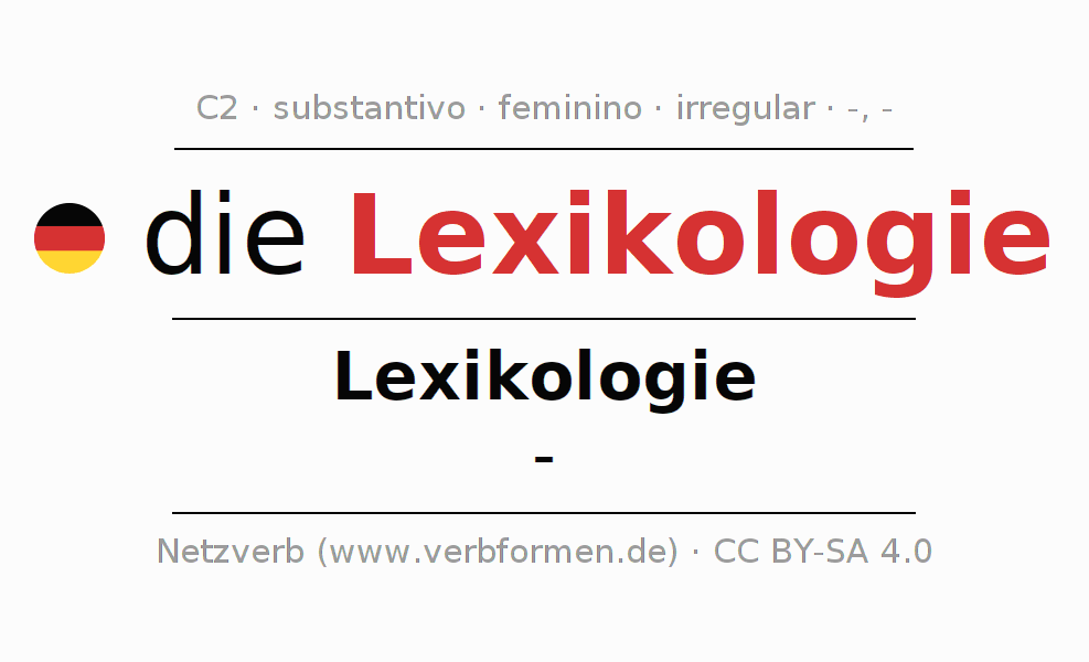 A declinação do substantivo Lexikologie (lexicologia) está no genitivo singular Lexikologie e no nominativo plural - . O substantivo Lexikologie é declinado com as terminações -/-. Não há formas no plural. O gênero gramatical de Lexikologie é feminino e o artigo definido é "die". Não se pode somente declinar o substantivo Lexikologie mas sim todos os substantivos em alemão. O substantivo faz parte do vocabulário referente ao Certificado em Alemão do Nível C2. Comentários ☆