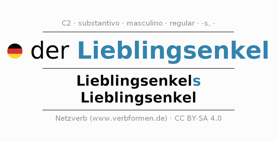 - Singular: der Lieblingsenkel, des Lieblingsenkels, dem Lieblingsenkel, den Lieblingsenkel