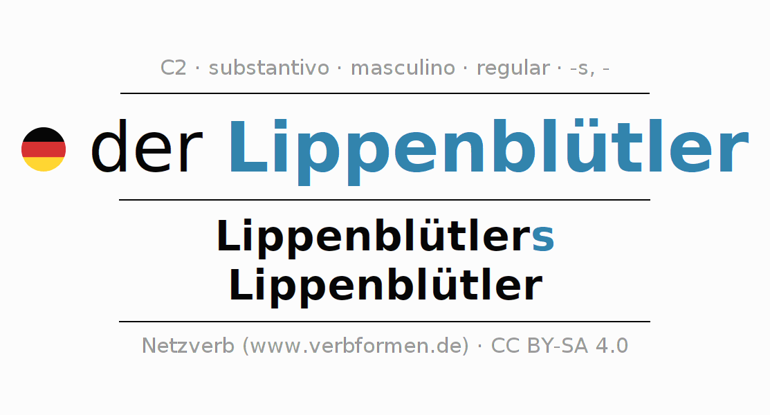 Resumo de todas as formas de declinação do substantivo Lippenblütler em todos os casos