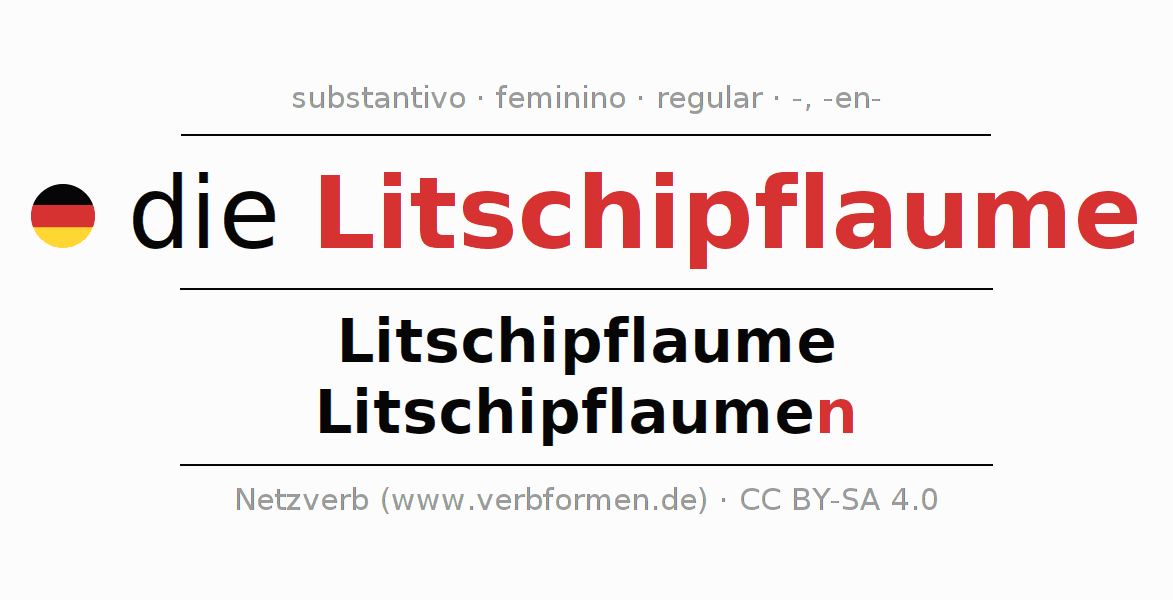 - Singular: die Litschipflaume, der Litschipflaume, der Litschipflaume, die Litschipflaume