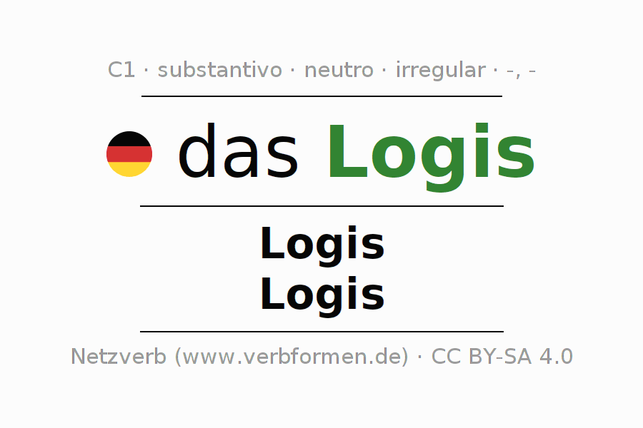 Declinação de Logis é apresentada em uma tabela com todas as formas no singular e no plural (plural) e em todos os quatro casos: nominativo (1º caso), genitivo (2º caso), dativo (3º caso) e acusativo (4º caso) . Especialmente para os alunos de alemão, a correta declinação da palavra Logis é fundamental.