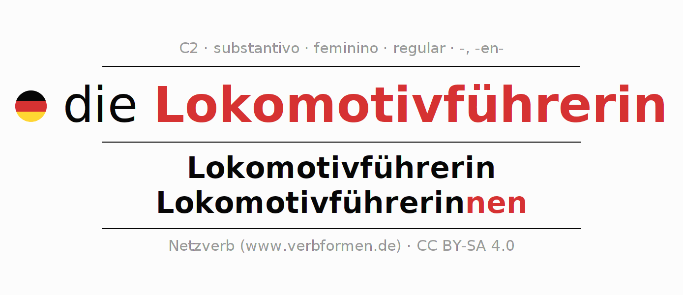 - Singular: die Lokomotivführerin, der Lokomotivführerin, der Lokomotivführerin, die Lokomotivführerin