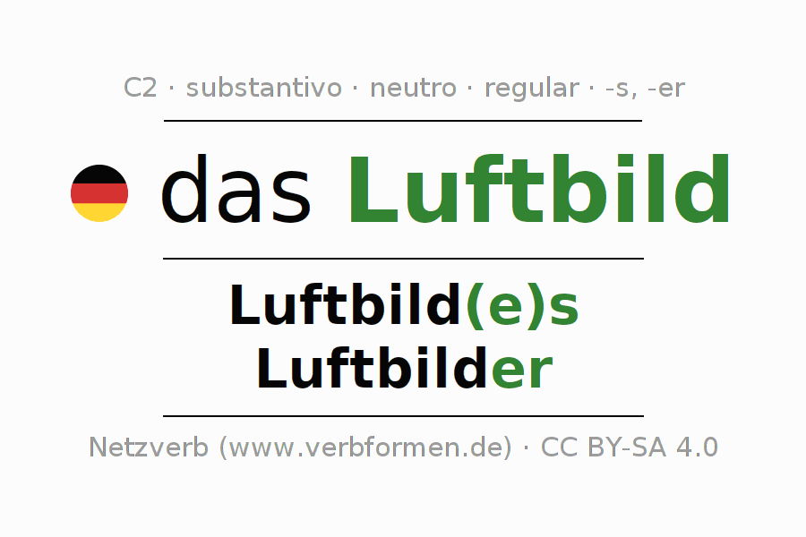 - Plural: die Luftbilder, der Luftbilder, den Luftbildern, die Luftbilder