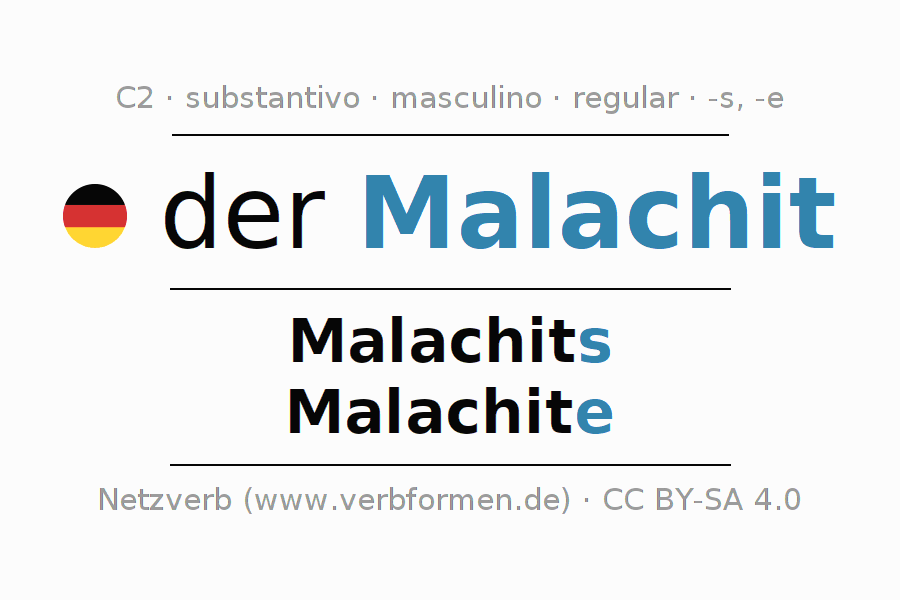 - Singular: der Malachit, des Malachits, dem Malachit, den Malachit