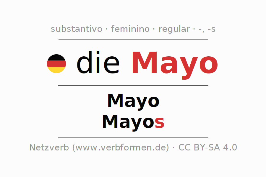- Plural: die Mayos, der Mayos, den Mayos, die Mayos