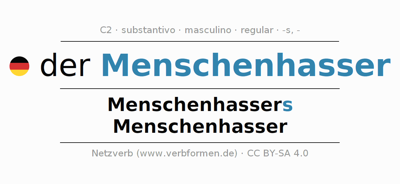 - Singular: der Menschenhasser, des Menschenhassers, dem Menschenhasser, den Menschenhasser