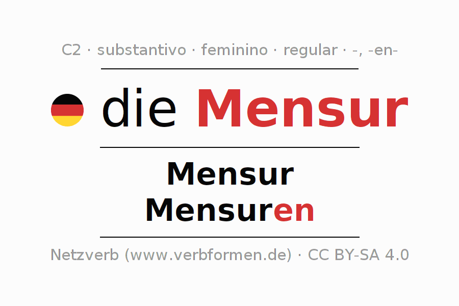 - Singular: die Mensur, der Mensur, der Mensur, die Mensur