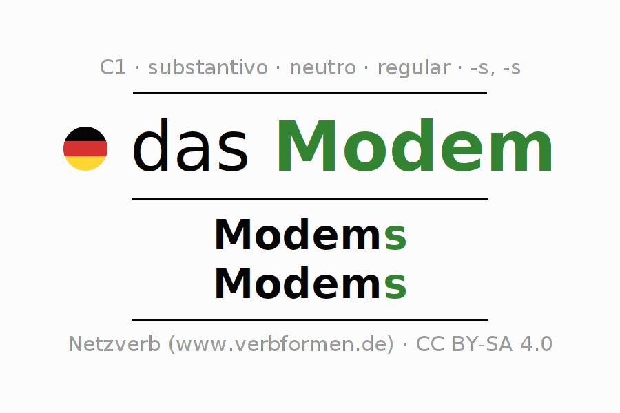 - Plural: die Modems, der Modems, den Modems, die Modems