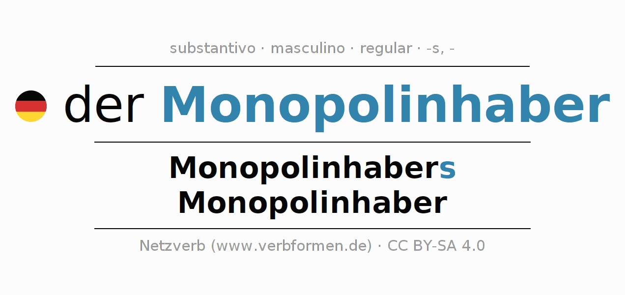 - Singular: der Monopolinhaber, des Monopolinhabers, dem Monopolinhaber, den Monopolinhaber