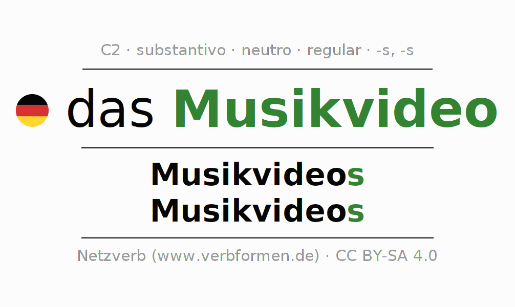 - Singular: das Musikvideo, des Musikvideos, dem Musikvideo, das Musikvideo