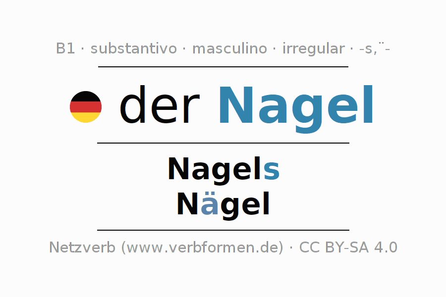- Singular: der Nagel, des Nagels, dem Nagel, den Nagel